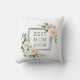 This custom text throw pillow features painted watercolor flowers in blush pink, white, and green foliage with square frames. For more advanced customization of this design, Please click the "Customize" button.