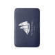 This midnight blue bath mat has a white sailboat and a place to personalize the bath mat with custom text such as a family name and year established. The text is white. The text can be edited or deleted.