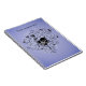 Personalized broken heart notebook with an abstract whimsical vector illustration of a broken heart which is fixed with a bandage and customizable text. The heart is surrounded by swirling plants and a reptilian monster with four eyes. This artwork has a purple background.