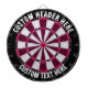 The Custom Text Darts Board is a high-quality, customizable dartboard that allows you to personalize your own text at the top and bottom. The board is made from durable, premium quality materials, ensuring longevity and reliable performance over time.