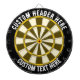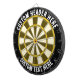 The Custom Text Darts Board is a high-quality, customizable dartboard that allows you to personalize your own text at the top and bottom. The board is made from durable, premium quality materials, ensuring longevity and reliable performance over time.