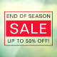 Sale sign window cling featuring customizable text "end of season sale. Up to 50 percent off" with a red border around it. Put in the window of your business to announce current sales.