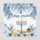 Introducing the “Festive Foliage Hanukkah Card”! This elegant square greeting card is perfect for celebrating Hanukkah with a personal touch. The card features a beautifully illustrated menorah with all candles lit, surrounded by intricate watercolor illustrations of blue and white foliage and golden coins, symbolizing the festive spirit of Hanukkah.