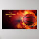 Custom Text Flaming Basketball Poster