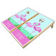 Natural Wood Cornhole Set, Yellow and Purple bags