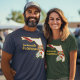 My 11 yo wore adult XL (5’7” 165#). The 8yo is small framed. She wore adult small and tied it in the back. Grandma wore adult large with long sleeve shirt underneath. Tall girl adult medium. Dark haired male adult large. Good quality dark Heather gray, Gildan brand shirt. -it was next up from basic choice and cost about $20 per shirt. Not too thick or thin. Washed and dried well, no major shrinkage. Not see-through. Can wear a bra under it fine. Screen print is just as shown and well done, front and back.