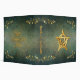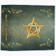 Grunge Forest Green wash background with Custom text, Gold Pentacle, and floral flourish designs. IMPORTANT NOTICE: Custom Text on back cover has 2 Layers for shadow effect! Both Layers Must Be Changed!