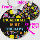Sweet black double sided keyring with Groovy, retro 90s style pickleball pattern with yellow pickleballs and black background.