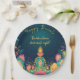 A Diwali celebration where tradition meets humor. This Happy Diwali paper plate is the perfect blend of both. With a vibrant dark blue background adorned with colorful illustrations of diyas, flowers, and fireworks, it sets the festive mood right away.