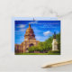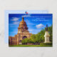 Show your Texas pride with this eye catching customizable postcard. This design features the Texas State Capitol building photographed on a sunny day with a bright blue sky background. The capitol, located in Austin, Texas was completed in 1888. The red granite building is a Texas landmark and houses the offices of the Texas Legislature. The back side of the card is a default light blue and has a small Texas state and flag outline at the top. The default text at the top right says "Historic State Capitol building in Austin Texas" in white print. Just hit the Personalize button to edit, or delete the text, or hit the Customize button to change the font, text color, or reverse side color if you wish. Makes a great item for Texans, Austin Texas lovers, projects, decoration, or lovers of monuments and travel postcards. This design can be transferred to any item in the Zazzle marketplace.