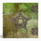 Beautifully rendered Medieval iron swirl hinges with matching Pentacle and custom text over a bright blue brown grunge brushed texture background
