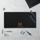 Custom Text Name Script Monogram Black Gold Simple Desk Mat