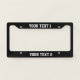 Sharing a personalized message is easy with a custom license plate frame. You can add custom text to the bottom and top of the frame. The text is white. The license plate frame is black.