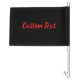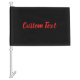 A bright red script forms the display text on this black car flag. You can edit the text to show your custom message.