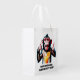 The shopping bags were excellent quality. The design was printed on both sides. They fold into a small rectangle that snaps close for easy storage. I bought some to give out and they were well received by everyone. I highly recommend them.