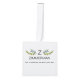 Features a personalized name and initial with a simple but elegant botanical leaf design and three custom photos. On the front in the center is where an Initial (either first initial of first name or first initial of a last name) will go and on either side of it will be pretty botanical green leaf's, in shades of moss green, and blue green to sage green. Below, will be either a the first name or the last name, depending on what you used for the initial above.