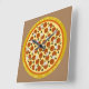 Pizza vector art with pepperoni, mushrooms, and olives toppings and your custom text on the crust of the pizza on the top and bottom. The background is cardboard box brown. Great pizza clock for those who love all sorts of pizza, including ordering pizza delivery.