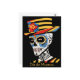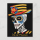 Step into a world of vibrant remembrance with our stunning Día de Muertos postcard. Against a deep black background, a captivating pop art Calavera takes center stage. This Calavera is adorned with rich hues of red, yellow, and white, infusing the traditional with a modern and energetic twist. A chic hat adds an extra touch of style to this iconic figure.