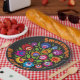 Unique folklore composition with beautiful cut-out style flowers inspired by folk art Wycinanki from Lowicz customizable Paper Plate. Cute as a gift for folk loving person.