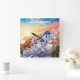 Custom Text Santorini Greece Sunset Square Wall Clock