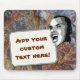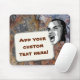 What's on your mind? Add your statement on this custom mouse pad! Digitally altered photo of young man shouting your text on a white rectangular label. Background is photo of grungy and rusty appearing rock texture.