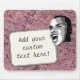 What's on your mind? Add your statement on this custom mouse pad! Digitally altered photo of young man shouting your text on a white rectangular label. Background is photo of pink rock texture.