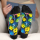 Step into a world of vibrant style with our unique socks featuring a captivating psychedelic pattern. Against a deep black backdrop, sport trainers and yellow pickleball balls come together in a dynamic fusion. Neon swirls of psychedelic colors infuse an energetic vibe, while intricate yet distorted details create an otherworldly ambiance.