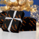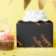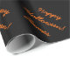 Custom text wrapping paper for Happy Halloween. Cute personalizable name idea for the Holidays. Customizable background colors and note. Black and orange colors.