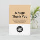 Easily personalize this Custom Thank You Employee Appreciation Card with Company Business Logo, Corporate name, Employee name and thank you message. A simple business design in camel and white colors fully customizable in front and back sizes, sans-serif basic and modern fonts and a professional and clear look. Avaiable in squared shape too, in medium, small and large sizes. No minimum order.