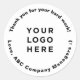 Easily personalize these simple, eyecatching professional Thank You Custom Corporate Employee Appreciation Day Gifts Classic Round Stickers adding your business logo and your custom circle text. Add your own slogan or website address to promote your company, upload your logo, image, graphic, clipart. Change text font choosing between a huge collection of serif, sans serif, decorative, handwritten and script fonts. Designed with text that fits the shape of the round sticker label. Perfect for your corporate party, baby shower, wedding favors, for business party giveaway labels, for express your gratitude to your employee, customers or guests, or giving a modern and professional look at sales staff, office staff or associates.