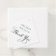 Custom Thank You Favor Tags. Elegant black and gray typography on white with printed bride & groom names on front plus space for a handwritten note on back.