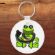 A bright green frog and a friendly snake sharing a hug. A cute and funny illustration of an unlikely friendship between predator and prey.