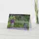 This template card cover features a photograph of a rustic log bench along a stone path in a lush green environment with a bucket of colorful yellow and purple flowers placed along one end. Fill in the template field with your own text, delete the text or click customize and change the text color, style, and size.