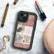 This chic phone design features spaces for three square photos on a sparkly rose gold faux glitter background, plus an elegant monogram initial in dark rose on a light rose blush square. Easily replace the sample images with your favorite photos by choosing the "Personalize this template" option.