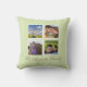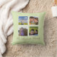 The fun and decorative photo throw pillow design, by red_dress, features a photo collage - to showcase your favorite photos - on a soft green background and a family name.