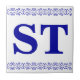 Victorian Letter Tile - Blue on white with a printer's border. Make tile signs. Two letters.