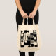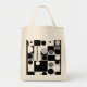 Carry style with this reusable custom tote bag featuring a bold black, white, and gray geometric pattern inspired by Retrofuturism 1960s mod design. Circles, squares, and dots create a retro vibe. Customize with your name or text—perfect for everyday use or as a stylish gift.