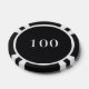 Black Poker Chips with value 100: easily change the value (from 1 to 5000) and name on the back for your poker nights or home tournaments. These tokens can also be used as drink tickets, golf markers, bachelor parties or as gifts to players!