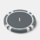 Grey Poker Chips with value 1: easily change the value (from 1 to 5000) and name on the back for your poker nights or home tournaments. These tokens can also be used as drink tickets, golf markers, bachelor parties or as gifts to players!