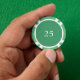 Green Poker Chips with value 25: easily change the value (from 1 to 5000) and name on the back for your poker nights or home tournaments. These tokens can also be used as drink tickets, golf markers, bachelor parties or as gifts to players!