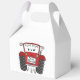 A tractor country farm wedding favor box which can be personalized. The bunting in the tractor is in a subtle cream and white.