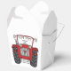 A tractor country farm wedding favor box which can be personalized. The bunting in the tractor is in a subtle cream and white.