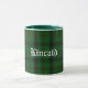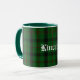Great looking Scottish clan mug done in the traditional green Kincaid plaid pattern. Old world style text in white reads Kincaid and is customizable to read what you want.