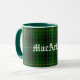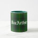 Great looking Scottish clan mug done in the traditional green MacArthur plaid pattern. Old world style text in white reads MacArthur and is customizable to read what you want.