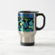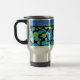 A chic Travel Mug to personalize with a quirky Blue Moons pattern in Aqua, Turquoise, Emerald Green, Neon Green and Dazzling Blue on a black background. Part of the Posh & Painterly 'Blue Moons' collection.