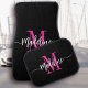 Modern, trendy and stylish car floor mat with your custom name and initial in a chic script calligraphy design with swirl flourishes (be sure to keep emoticons or spaces next to full name in place for swirls to remain). This is the hot cool pink and black version. Easy to customize size and add more text or personal images or photos under "Edit using design tool" in the personalization tab.