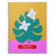 Custom trip travel name modern yellow pink floral Spiral Notebook. Personalized bright colors trendy yellow pink notebook for travel planning, trip plans. Beautiful vibrant artistic tropical exotic journal with monstera leave. Gift idea for travel lovers, women, mothers, wifes, adults, girls, young professionnal, for birthdays, christmas, summer holidays. original artwork form mwanga design.