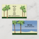 Custom Wording. Tropical theme. The front has 2 palm trees on each side and a green checkered border at the bottom with room for all your business information - just add your personalized info as needed, and delete any extra lines as you prefer. The back side has 2 palm trees with blue ocean water and sand. Cool Contemporary Sleek. The text font style fits the South Beach theme, but can be customized to any font stlyle or sized to fit. Great for any costal business from hotels and bars, professional businesses or independent contractors, travel agents, landscapers, or general services.