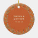 Add a retro vibe to your celebrations with this groovy ceramic ornament featuring tropical palm trees in burnt orange, customized with your wedding details. Perfect for beach weddings or couples who love vintage tropical aesthetics, this ornament makes a unique and meaningful keepsake. Whether it’s for your own tree or a thoughtful gift for newlyweds, this design captures the laid-back, sunny spirit of your special day in a fun and stylish way.