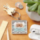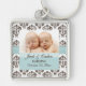 Customize this beautiful blue and brown damask baby photo keychain with a picture of your newborn twins, and personalize it with their names and date of birth. This makes a lovely gift for a new mom or grandmother of twins. Design by Chrissy H. Studios, LLC.
